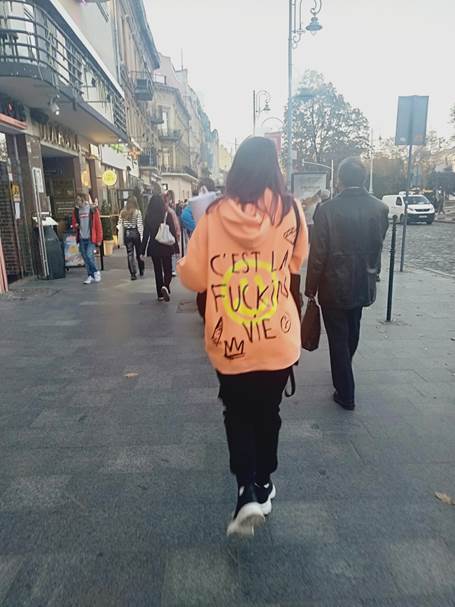 In that context, wearing that hoodie – it was classic. I wondered if it was a hand printed design. Was the pointy thing at bottom left meant to be a missile? And yet, there was also something starkly less than amusing about it, particularly in a place like Ukraine in 2022. I think the inclusion of the f-word captures that part of it rather well.